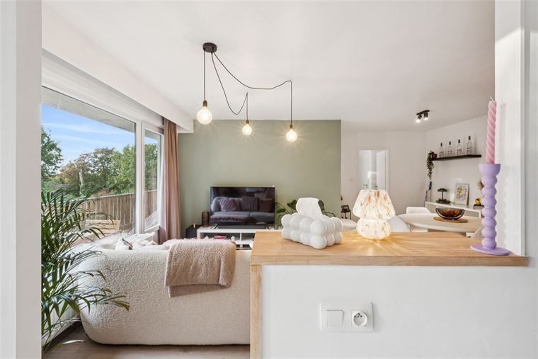 Gerenoveerd 2-slp kamer appartement gelegen op de 4 de verdieping met prachtig zicht op het park, op wandelafstand van centrum Evergem, openbaar vervoer, winkels, scholen en vlotte verbinding met de R4.